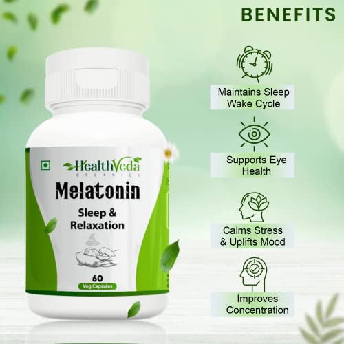 NON HABIT FORMING: Health Veda Organics Melatonin Capsules is a non addictive sleep support. It is 100% veg, safe to consume regularly & gives natural results for a healthy sleep cycle.
