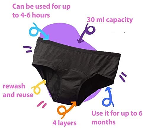 ✅SAFE & HYGIENIC: The super absorbent capacity of these reusable period panties helps in staying dry, fresh, and comfortable for upto 4 to 6 hours.
