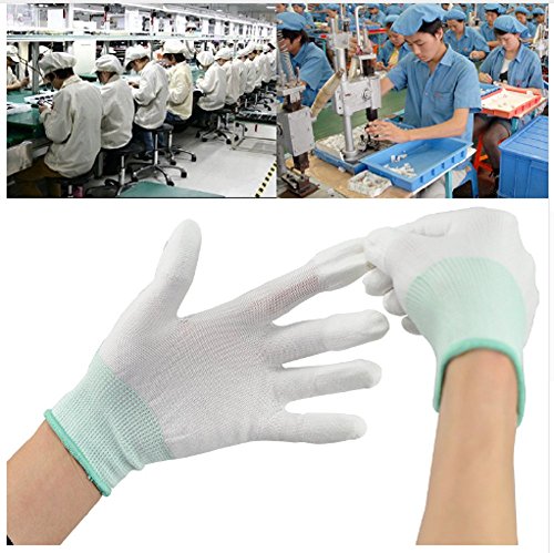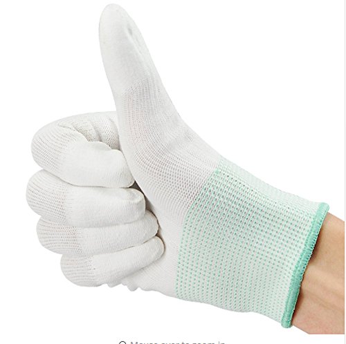 Main application is frequent static electricity including sites where manufacturing mobile phones, assembling computers,assembling electronic circuit, assembling TFT-LCD, Cleaning rooms, PCB factory, laboratories, etc. Features: 1. PU Coated hand and fingers for protection. 2. Provide superior comfort 3. Thinly coated for higher flexibility. 4. Designed for light-duty tasks. 5. Economical grade. 6. Textured PU gives these gloves better grip and comport. 7. Quantity : 3 pairs 8. Materials : Nylon, Spandex, PU (polyurethane) 9. Knitted : 13 Gauge Package Included: 3 Pairs x Anti static gloves