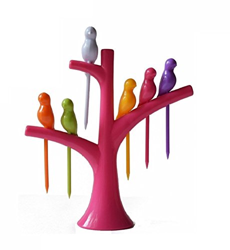 Say goodbye to drab-looking forks and cutlery by owning the Birdie Plastic fruit fork set with stand. Featuring a set of unique forks shaped like birds perched on a tree stand, this fork set will add a great touch of style and colour to your kitchen or dining table décor. These brightly coloured forks are perfect for eating cut fruits such as bananas, apples, pineapples and more or cheese and other snacks straight off the plate. Even when not being used, this fork set acts as an excellent addition to your kitchen décor.