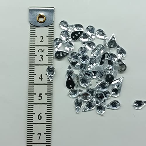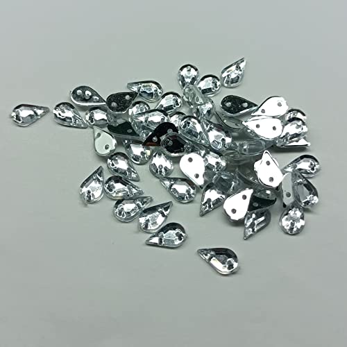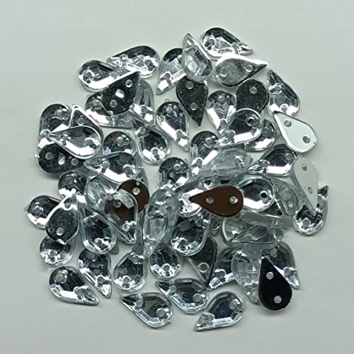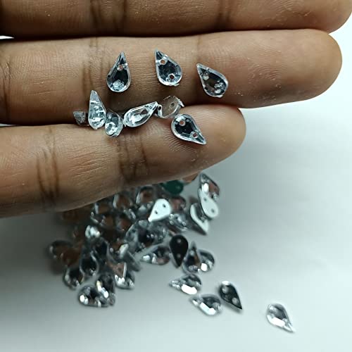 Designerbox Drop Shape Silver Transparent Acrylic Stones for Art and Craft, Jewellery Making, Embroidery Works with Fabric Glue ( pack of 100pcs ) Width : 9mm