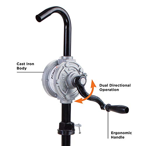 Groz rotary barrel pump is an ideal solution for general purpose lubrication on farms, automotive, workshop & construction sites. Machined vanes provide better draw and smooth delivery. Cast iron construction ensures the durability of the pump during use. It can be used to pump liquids in either direction.