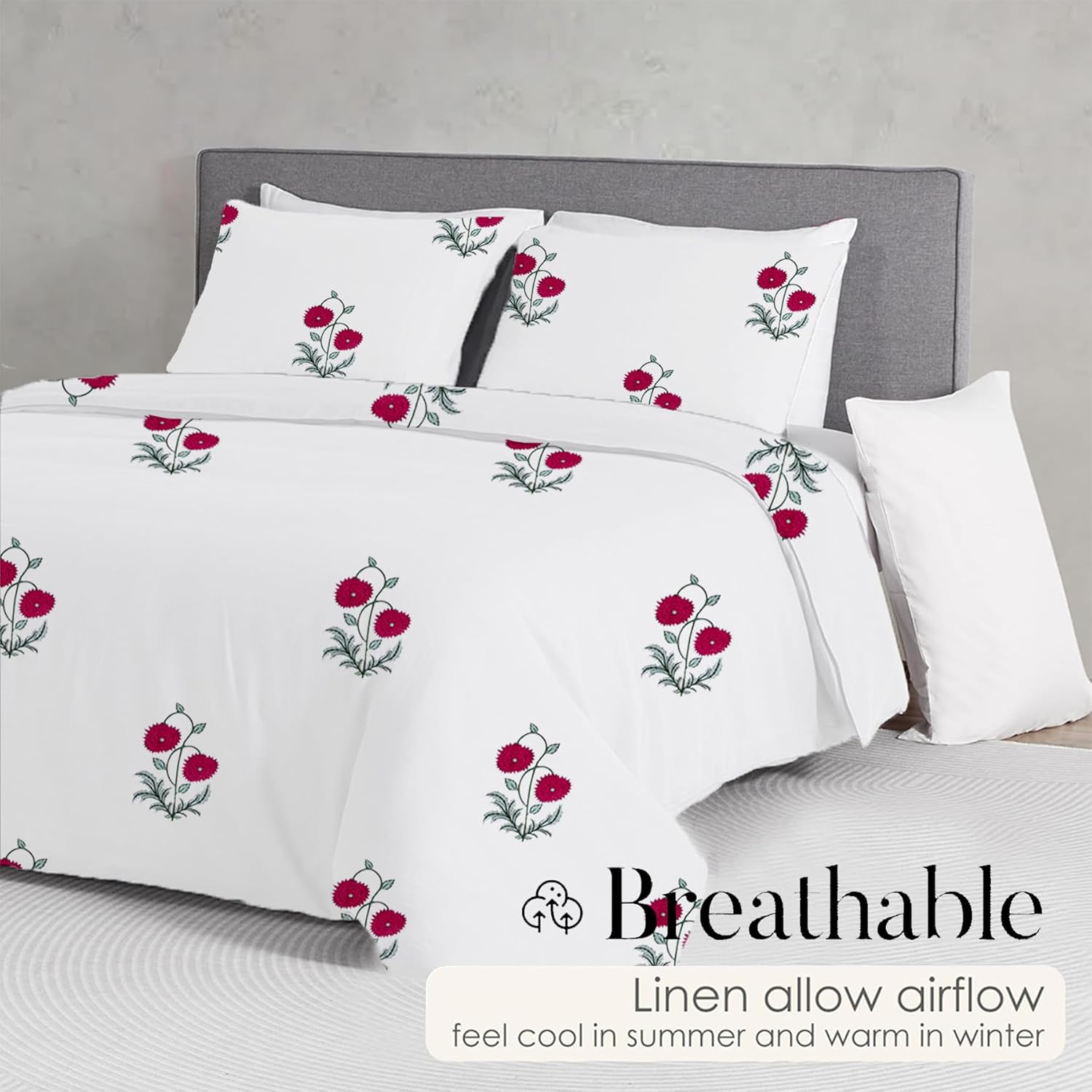 HOMEMONDE Duvet Cover | Single Bed 210 TC Soft Cotton Comforter with Corner Ties | Red Rose