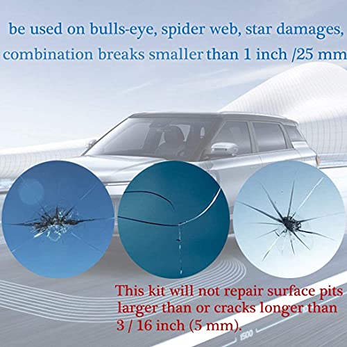 This kit should only be used on bulls-eye, spider web, star damages, and some combination breaks smaller than 1 inch (25 mm) in diameter. This kit will not repair surface pits larger than or cracks longer than 3/16 inch (5 mm).