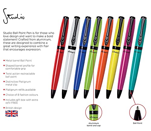 Platignum was established in 1919. Platignum pioneered many innovations during the course of their history. In the 90’s the brand was brought out by Snopake. After launching their first modern revamp in 2007, the second generation of 21st century Platignum pens is now available, with an interesting balance of retro style and contemporary design, using quality materials. All the pens are largely made of metal. Studio Ball Point Pen is for those who love design and want to make a bold statement! Crafted from aluminium, these are designed to combine a great writing experience with flair that encourages expression.