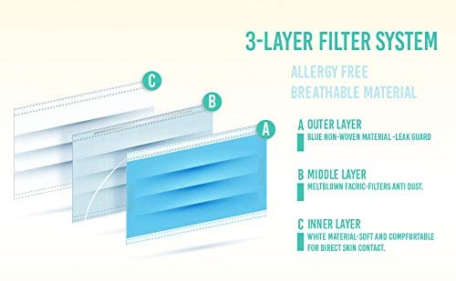 Prime deal BY SAFE LIFE 3 Ply Face Mask with BFE ≥ 95, ISO, CE and SITRA Certified Standard disposable face masks for protection and anti pollution with Nose Clip.