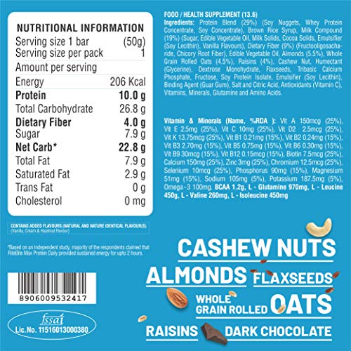 DELICIOUS NUTRITION: Satisfy your taste buds with a perfect blend of nuts [almonds, cashew], omega-3, fiber, vitamins and minerals with dark chocolate. YOUR ENERGY BUDDY: No time for breakfast before the video call? Need something energy boost for the grocery run? Got that midnight movie craving? Choose the healthier Max Protein bars as your energy and nutrition buddy. Don’t skip on your health and weight goals. Have this bar handy for all the time whenever bored or binge eating hits you.