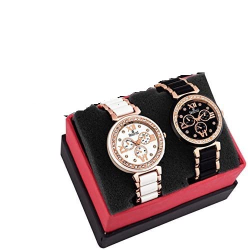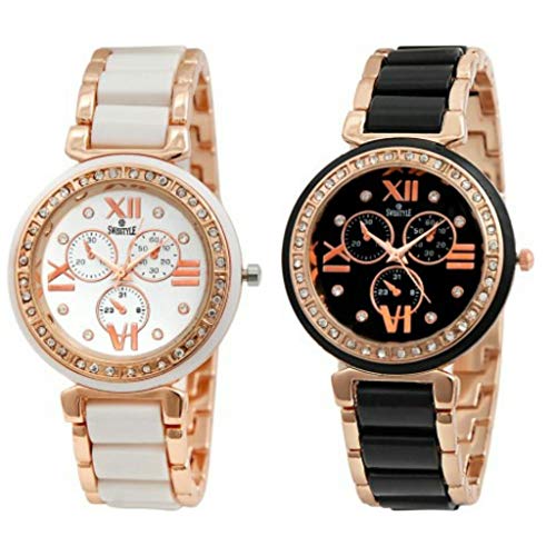 Combo Watch For Girl’s & Women Stainless steel strap for durability Slim and sleek watch Combo watch for women & Girls This Aaradhya Fashion watch combo contains 2 beautiful watches. Both the watches have an unique design, and come in a round dial. While one watch has a completely black dial with gold coloured roman numerals, the other watch has an off-white coloured dial with white gold coloured roman numerals. Both the watches have subdials and a button on the side of the dial to adjust the time and other settings.